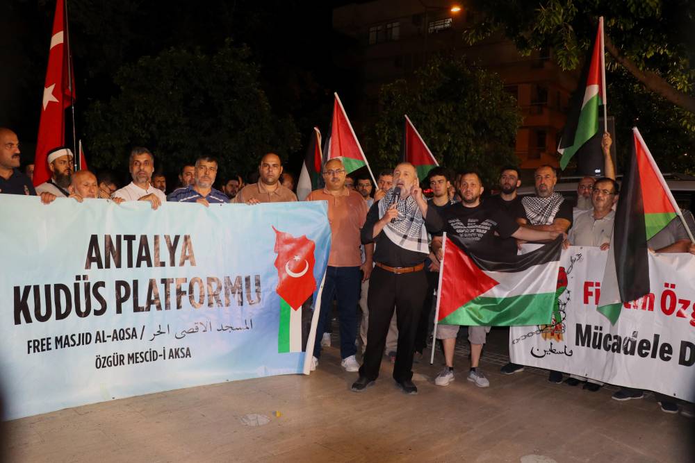 Antalya Kudüs Platformu, sosyal medya hesaplarından yaptığı duyuruda, Gazze'ye doğru yol alan Küresel Sumud Filosu'nun İsrail donanması tarafından engellendiğini belirterek, vatandaşları protestoya davet etti. Duyurunun ardından akşam saatlerinde Muratpaşa Camii önünde toplanan grup, İsrail'e tepki gösterdi.