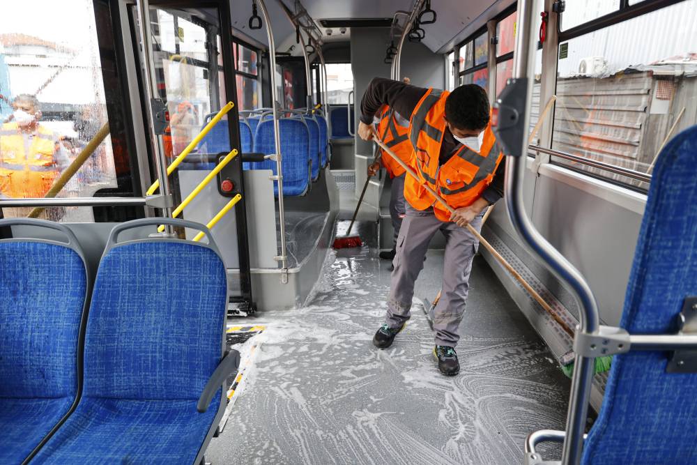 Seferlerini tamamlayan otobüsler, depolama alanına getirildikten sonra gün içinde yolcuların yoğun olarak kullandığı tutacaklar, koltuklar, zemin ve tavan gibi alanları ayrı ayrı ve özenle temizleniyor. Ardından ekipler, araçların içini hijyen ekipmanlarıyla köpüklü şekilde detaylı olarak temizliyor.