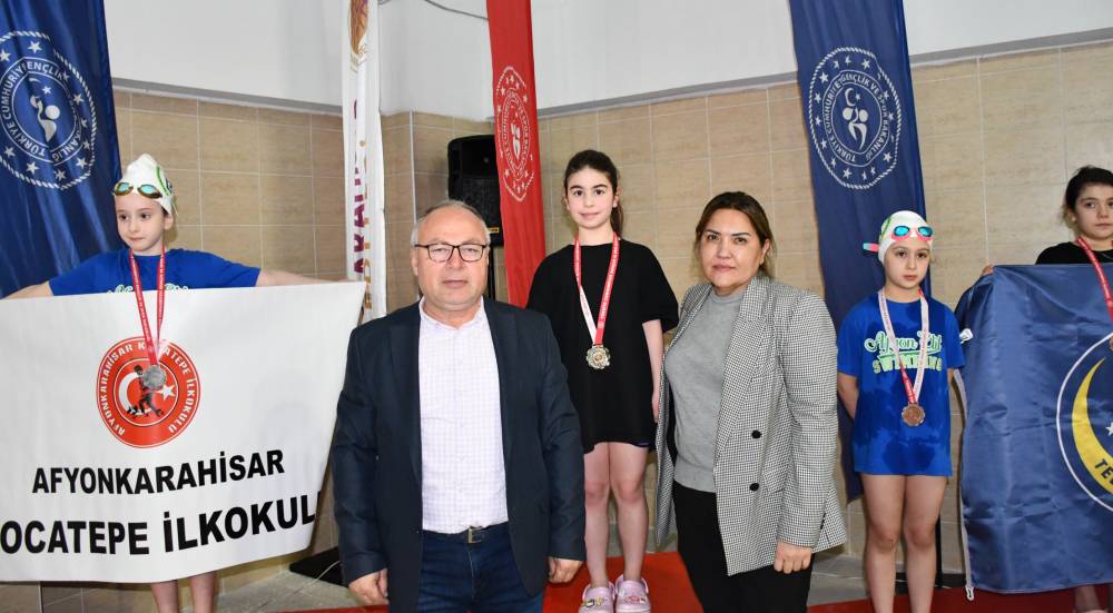 Muzaffer NAL/AFYONKARAHİSAR, (DHA)- AFYONKARAHİSAR'da Okul Sporları Minikler A-B ve Küçükler Yüzme Müsabakaları'nda 260 sporcu birincilik için yarıştı.Okul Sporları Minikler A-B ve Küçükler Yüzme Müsabakaları, Dr. Muharrem Kasapoğlu Yüzme Havuzu'nda gerçekleştirildi. 3 gün süren müsabakalara 260 sporcu katıldı. Müsabakalarda dereceye girenlere ödülleri düzenlenen törenle verildi. (DHA)FOTOĞRAFLI